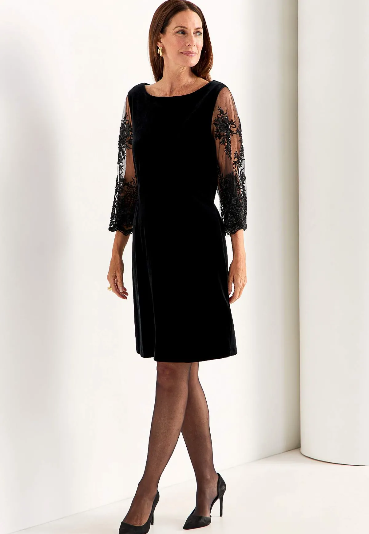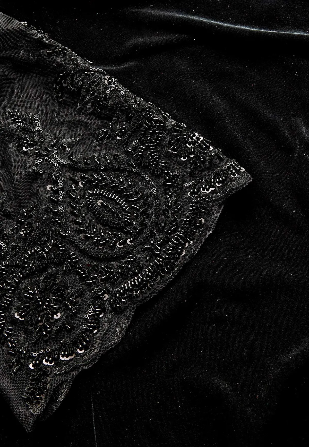 • 3/4-långa trumpetärmar med meshtyg och brodyr med svarta pärlor.