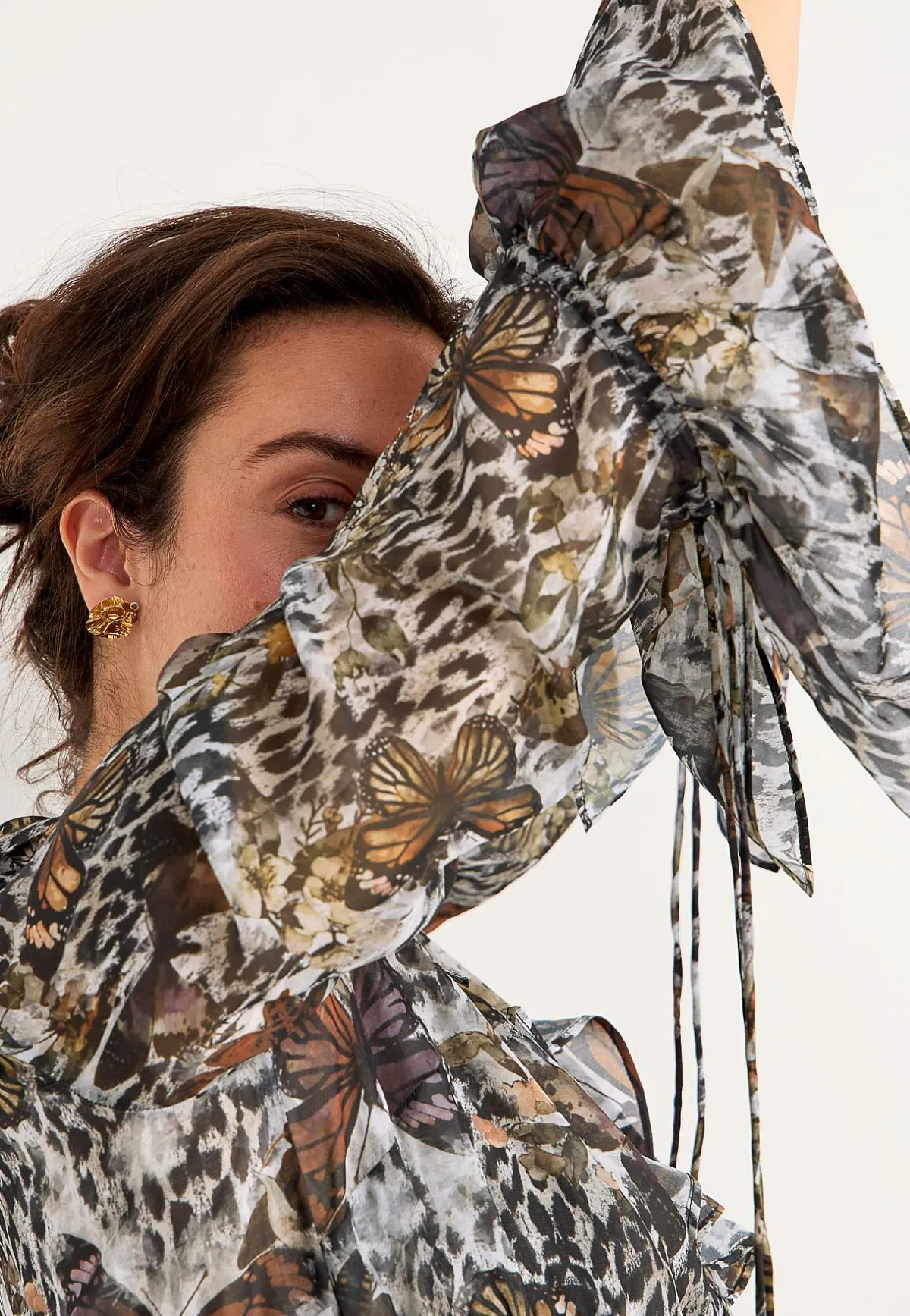 • Långa, skira ärmar med volang och justerbar snörning.