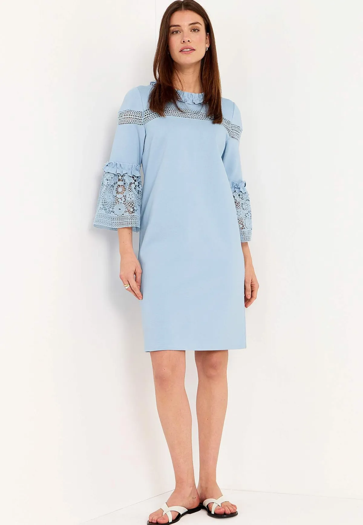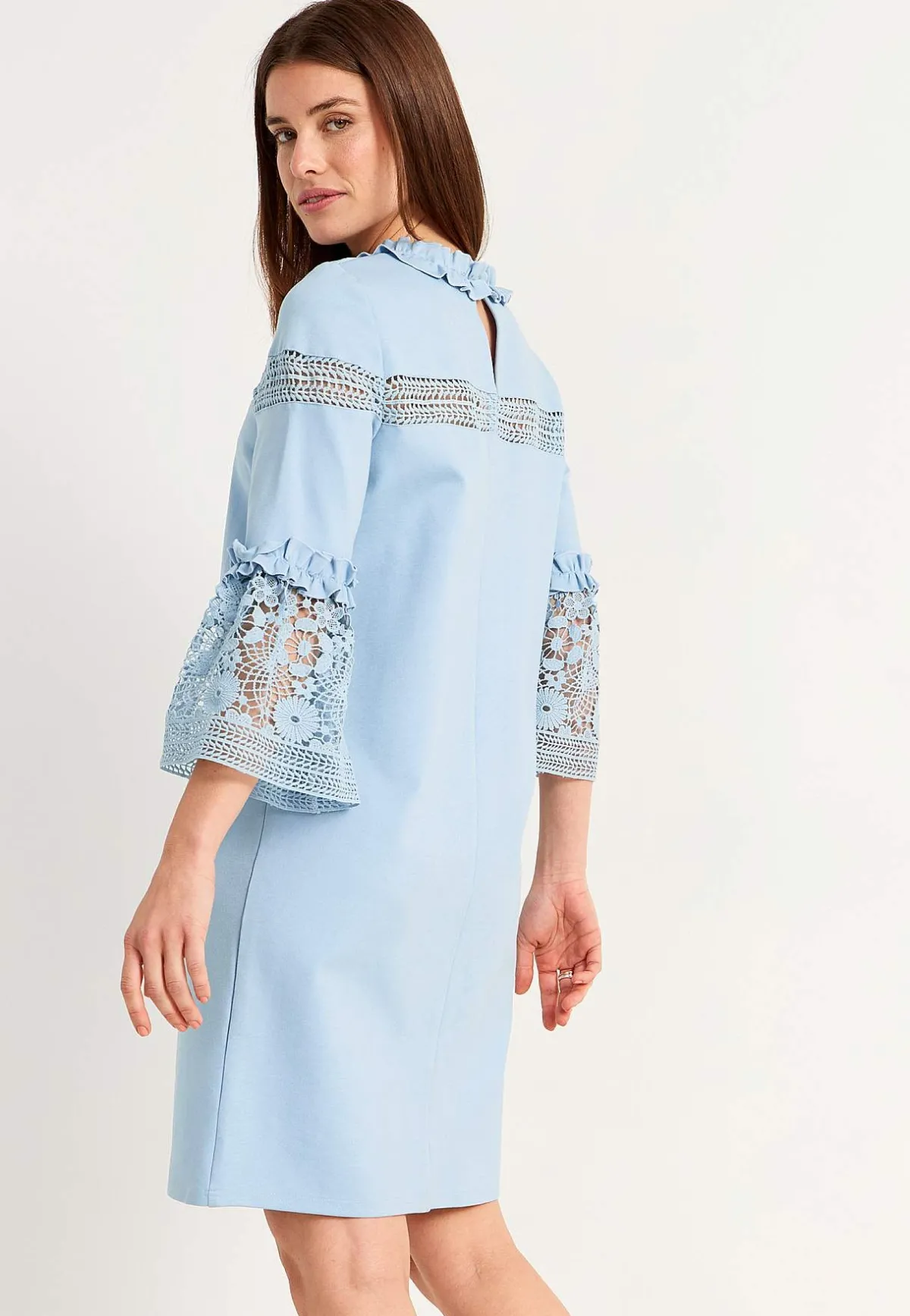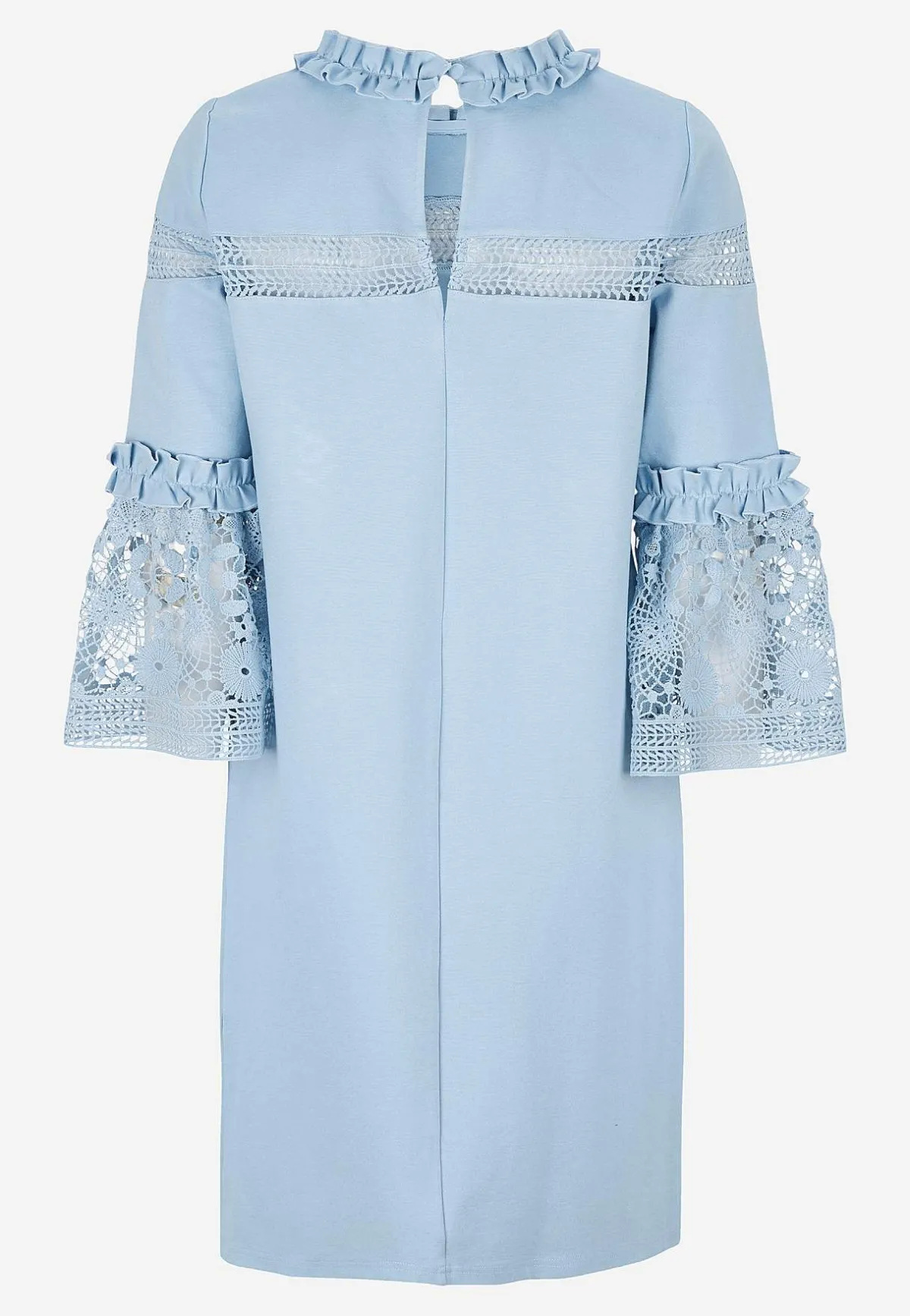 • Hög hals med dekorativ volang och knappöppning i nacken.