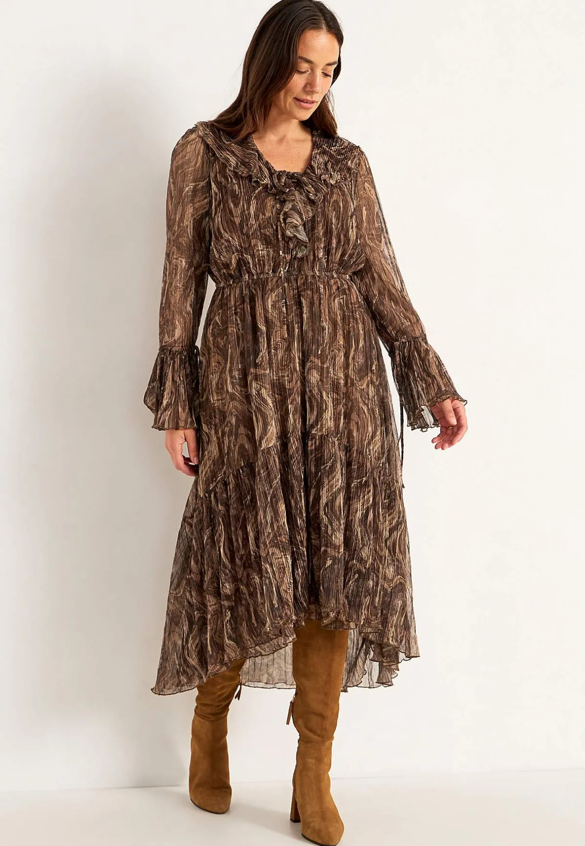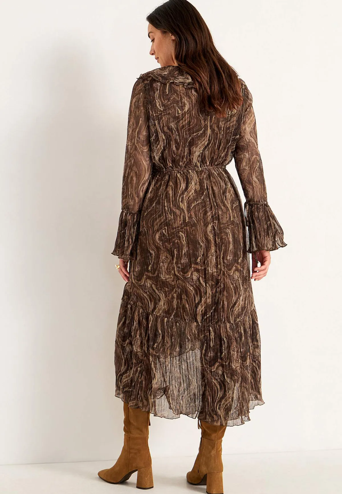 • Mönstrad klänning med glittertrådar.