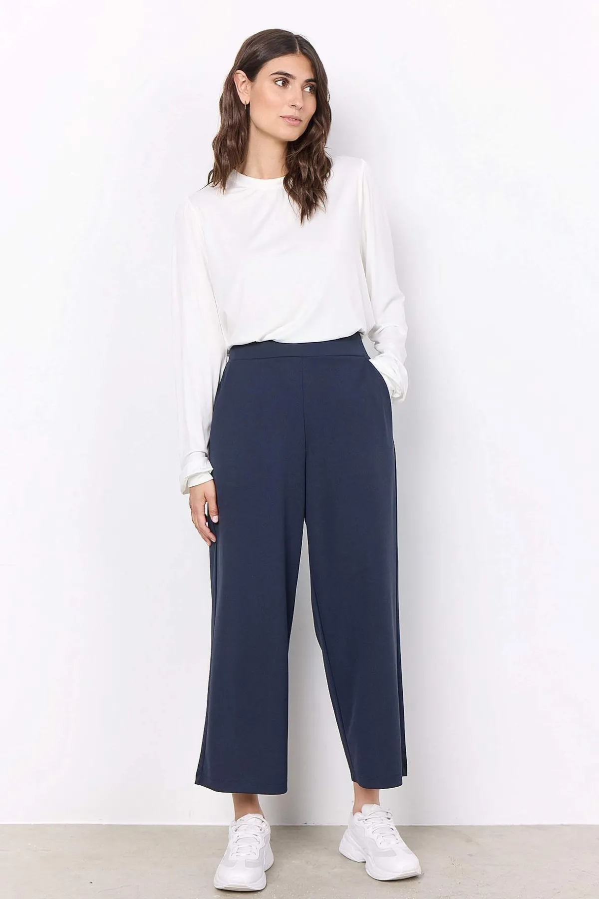 • Bekväm, ankellång dra på-byxa.