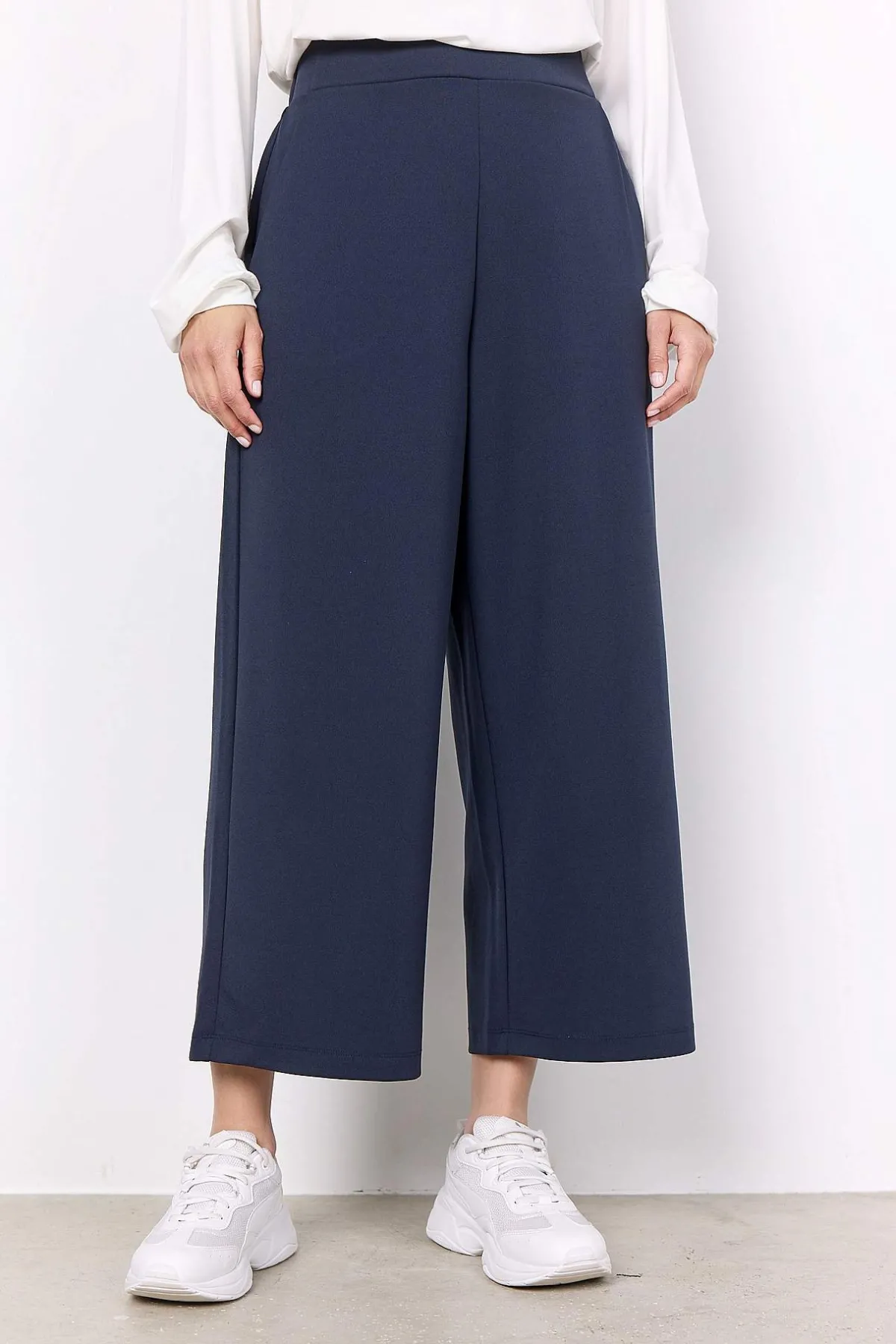 Ankellång trikåbyxa med vida ben.