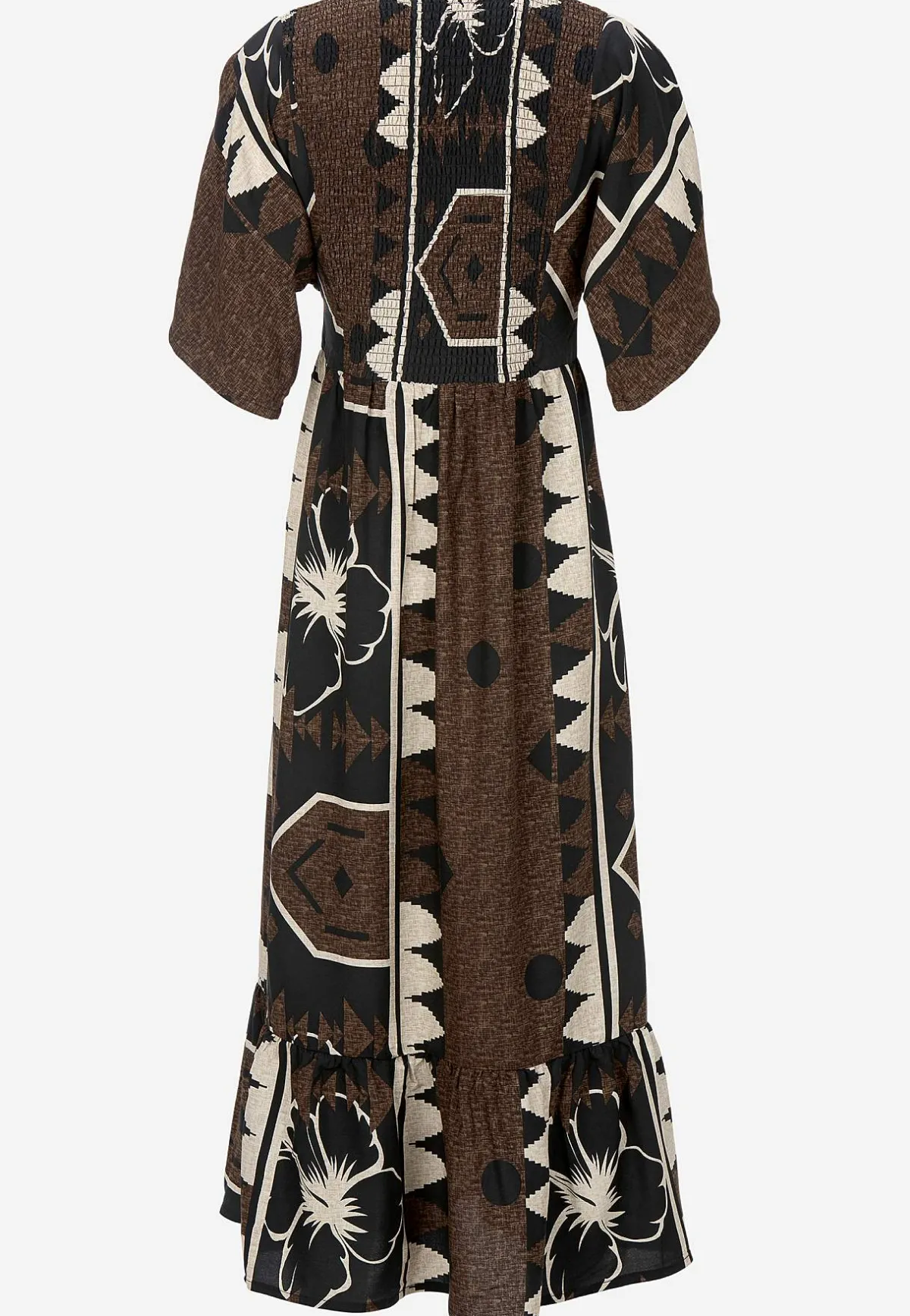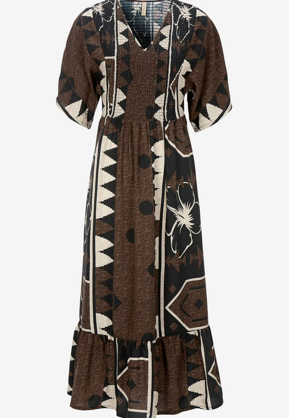 • Vävd klänning i följsam viskos med ett abstrakt mönster.