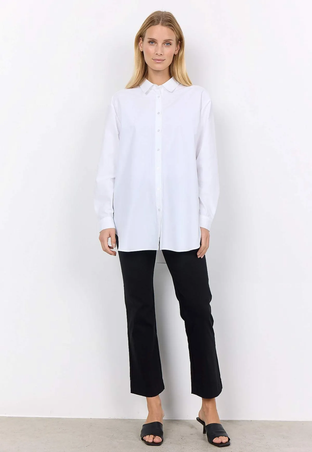 • Lite längre skjorta med klassisk krage.