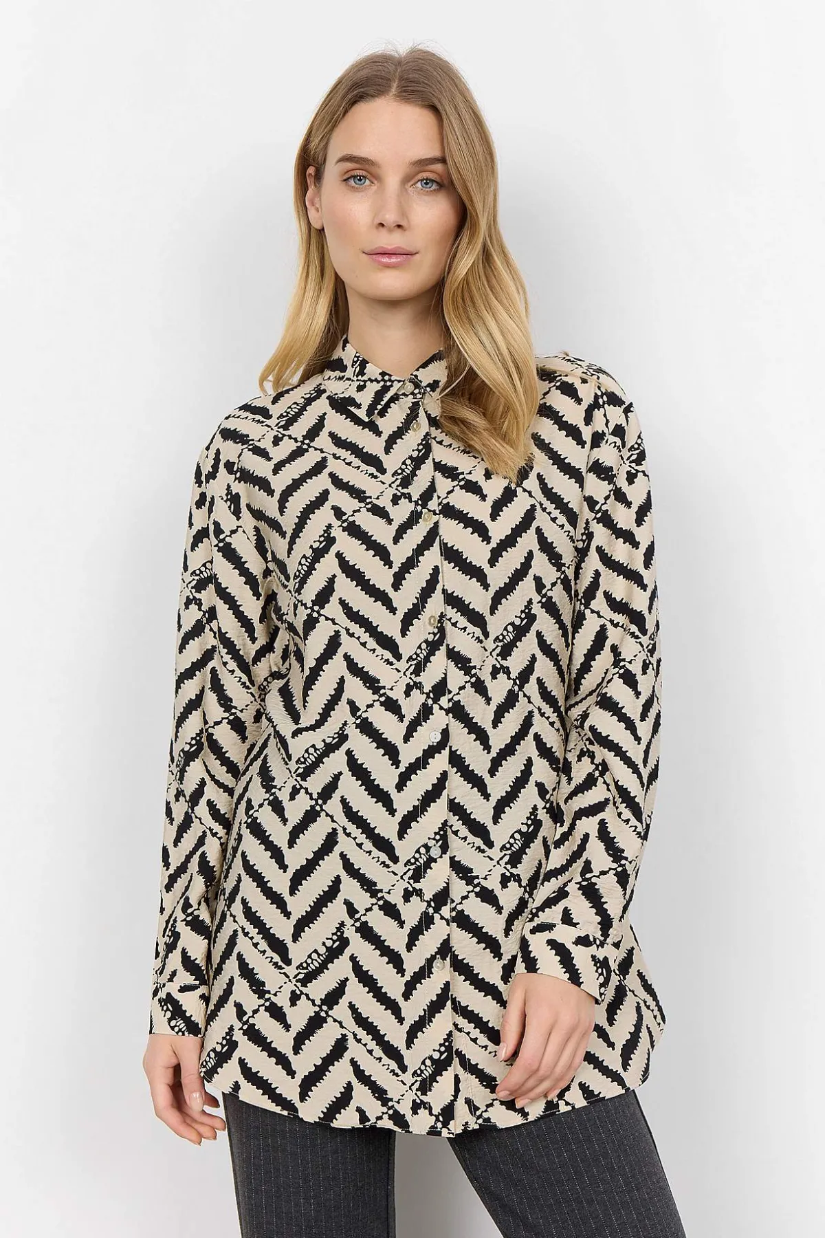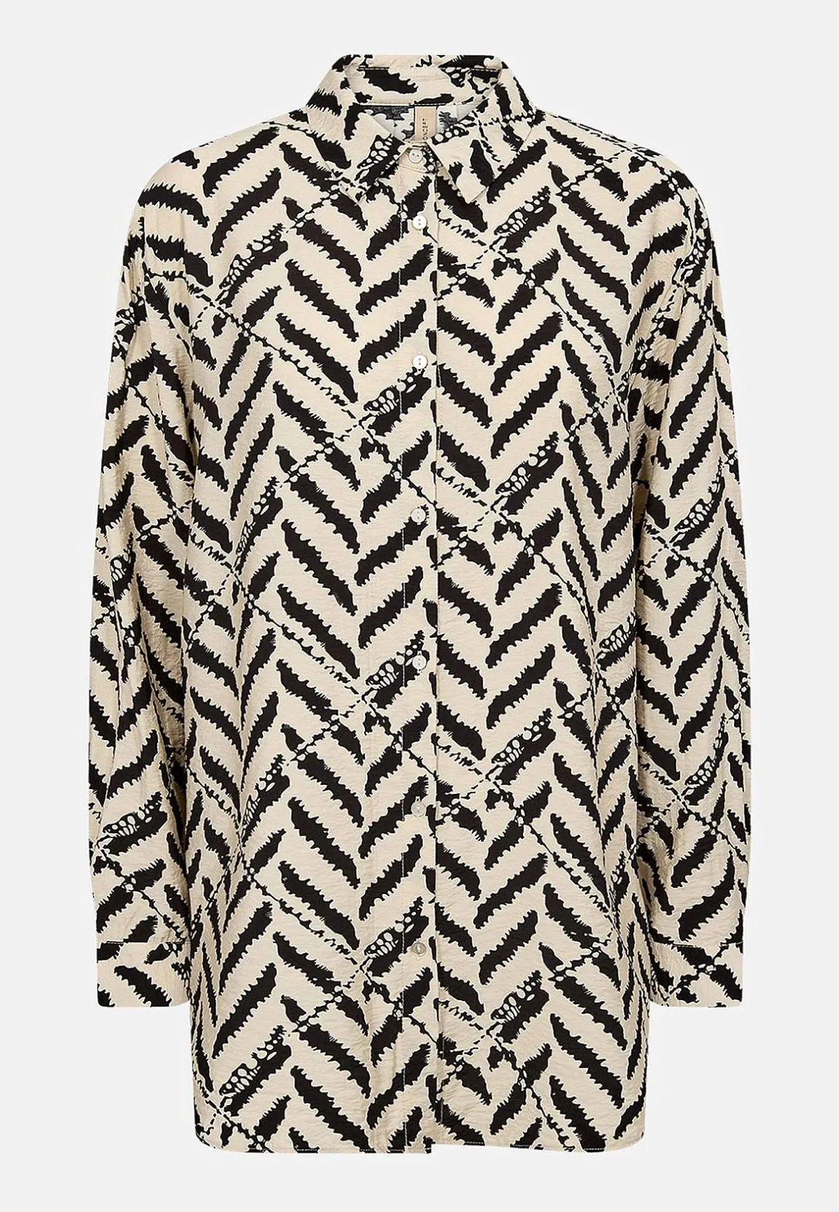 • Mönstrad, vävd långskjorta med lätt krinklat material.