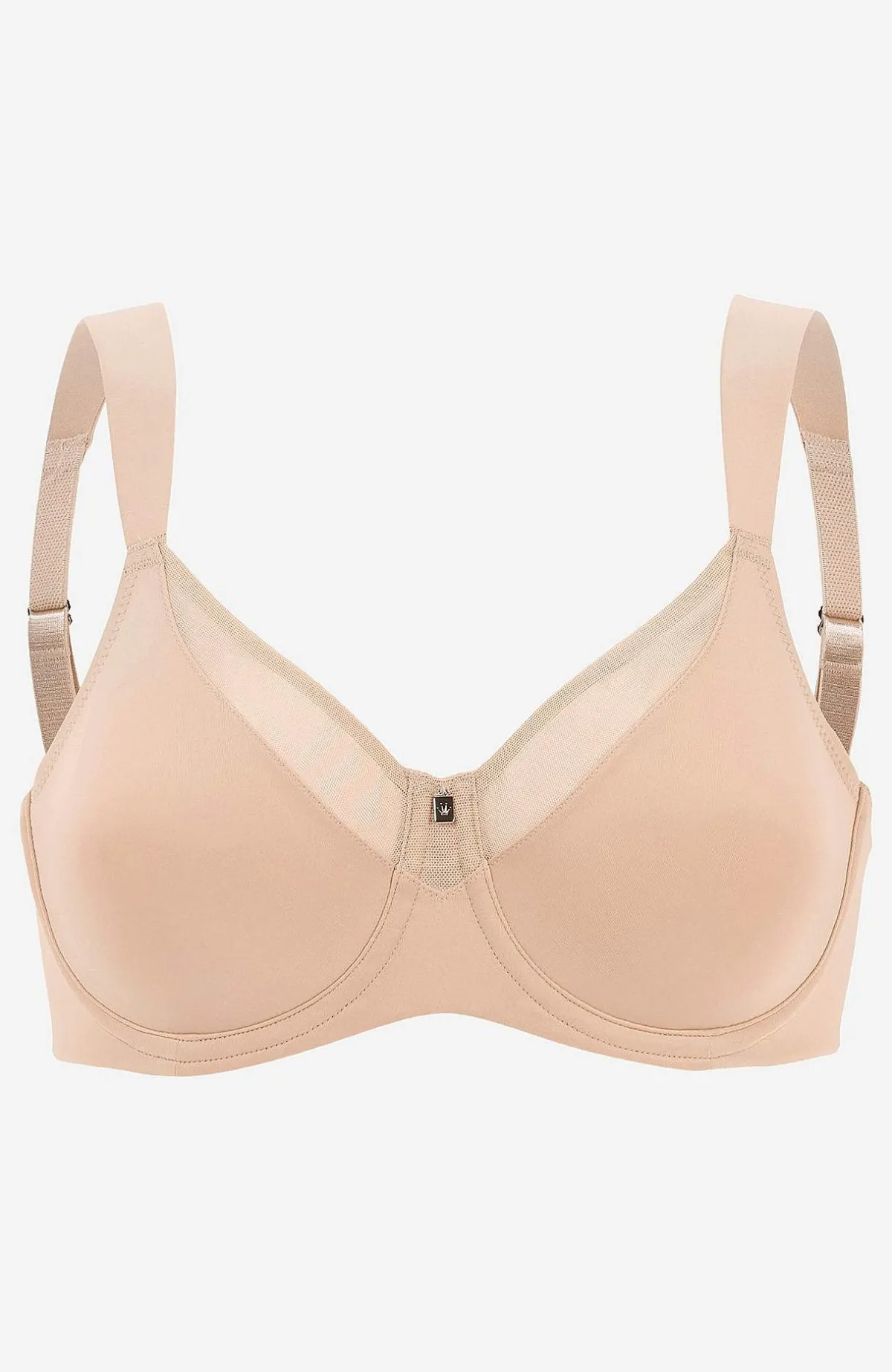 Den här minimizer-behån från Triumphs shapewearserie ”True Shape Sensation” gör att bysten ser upp till en kupstorlek mindre ut, samtidigt som den ger bysten fin form tack vare den stödjande, lätta jerseyn som formar utan vaddering. Sidorna är även utformade så att behån inte ska synas under figurnära kläder. Elegant tvådelad design med behagligt breda sidstycken som har meshfoder för mjuk support och bekväma komfortbyglar som omsluter bysten, ger den skönt stöd och fin form. Axelbanden är breda, reglerbara och lätt vadderade och hysk/hak-knäppningen som har tre lägen är nickelfri.